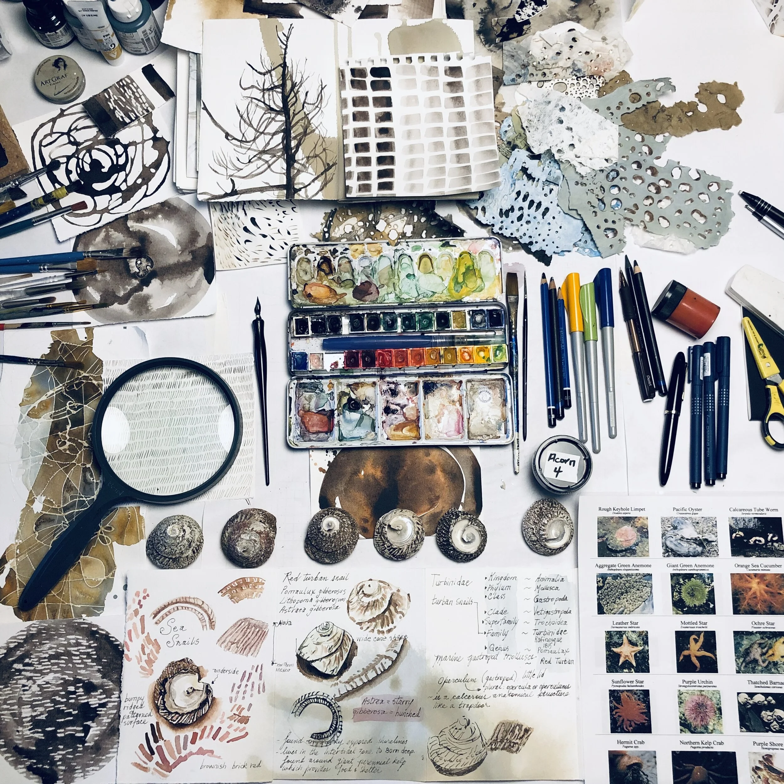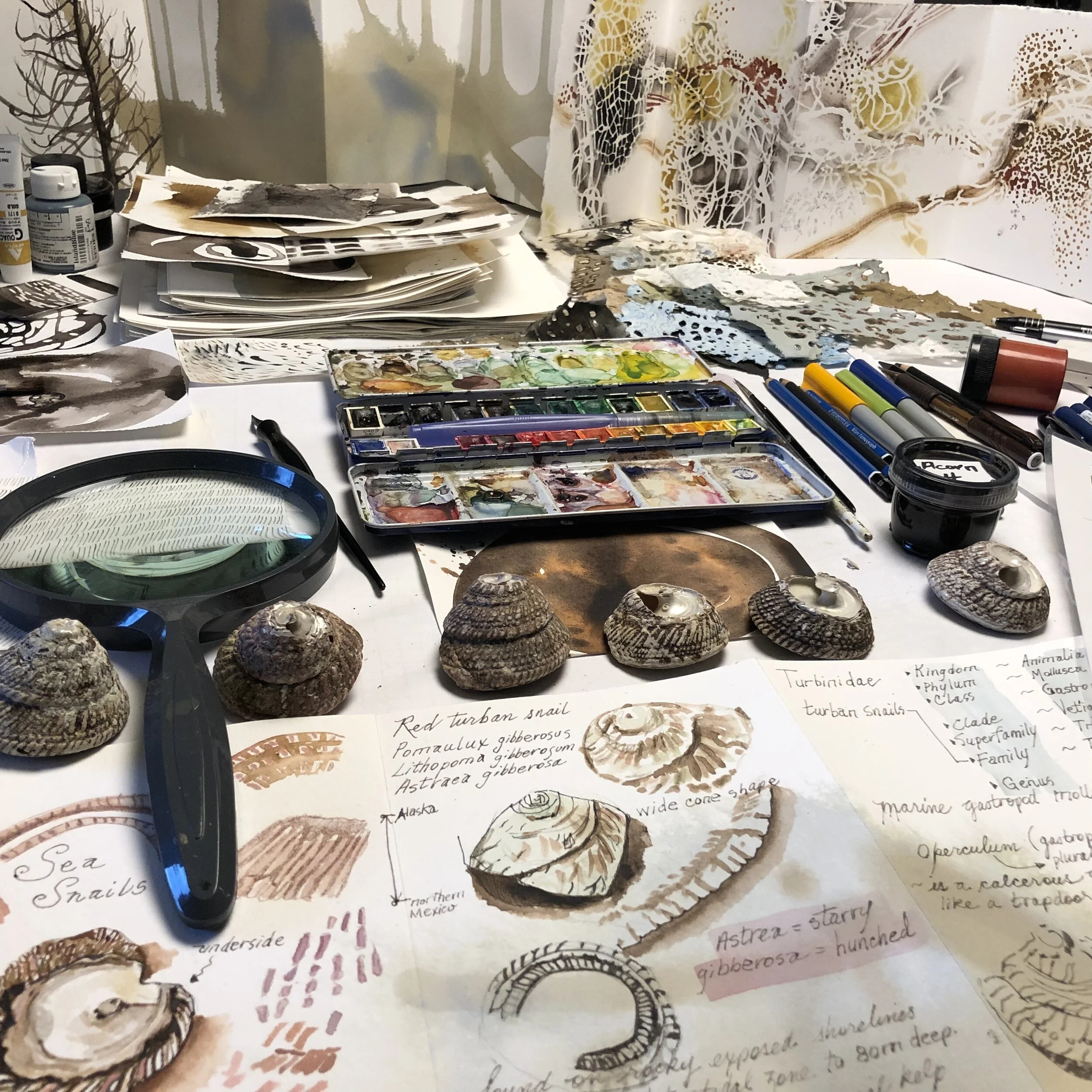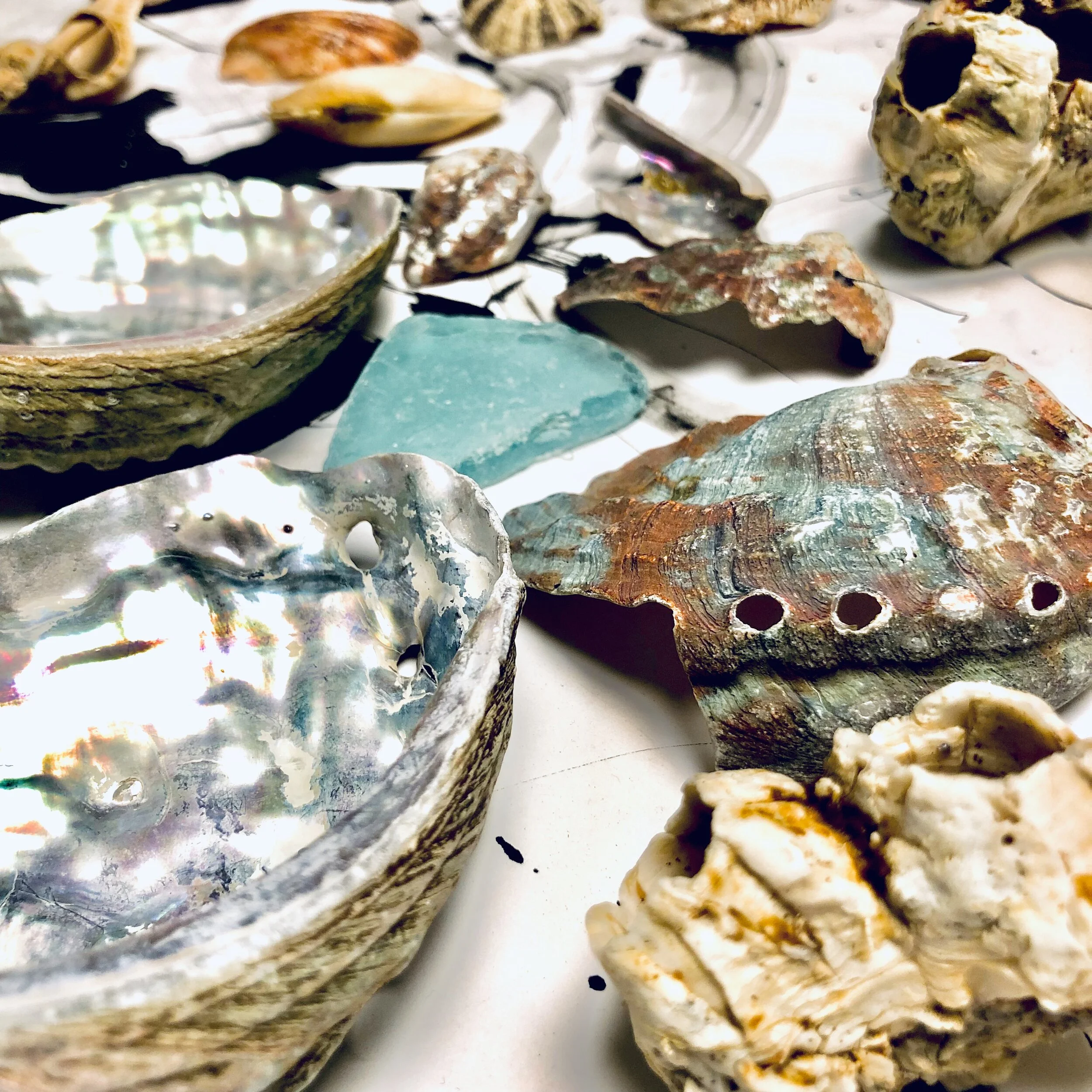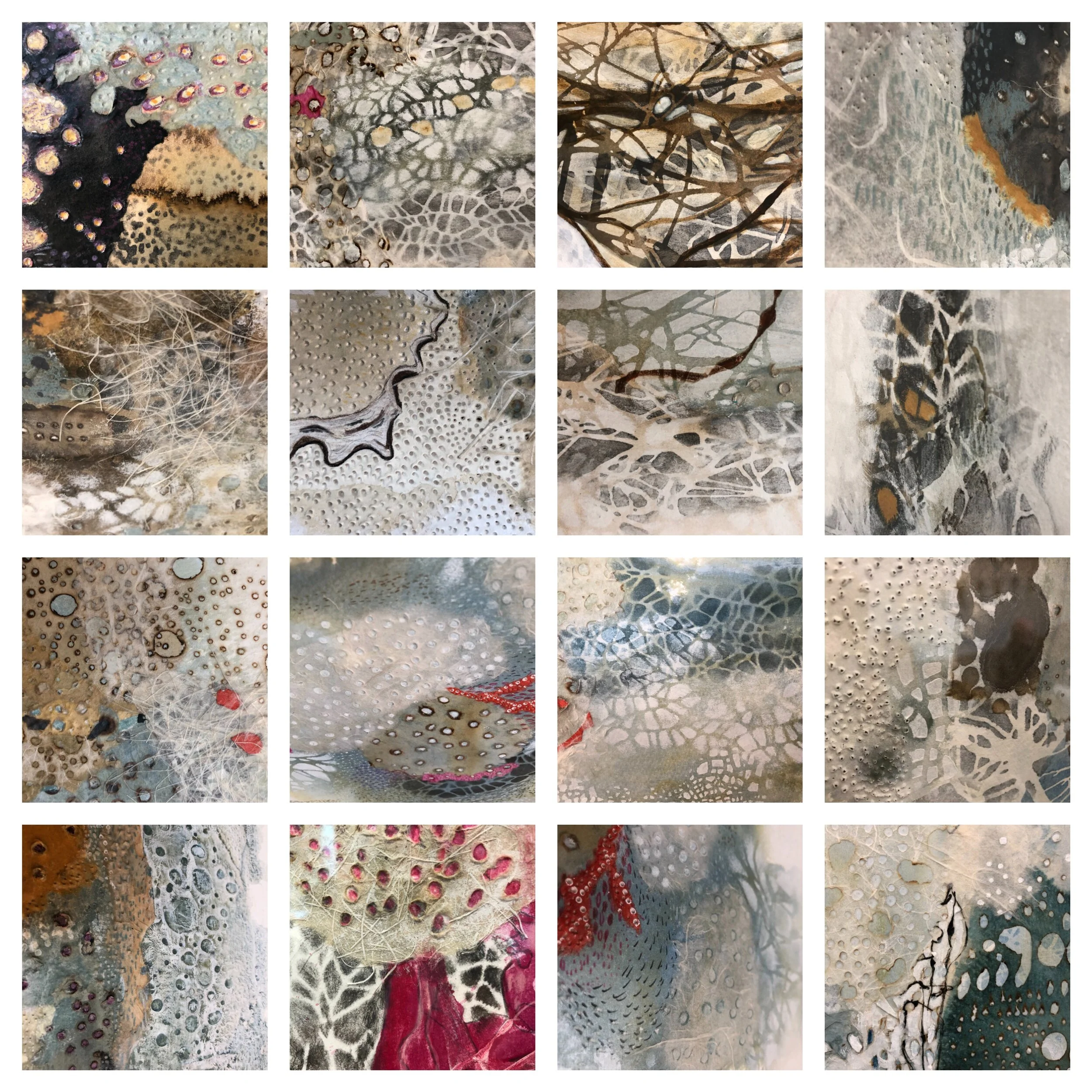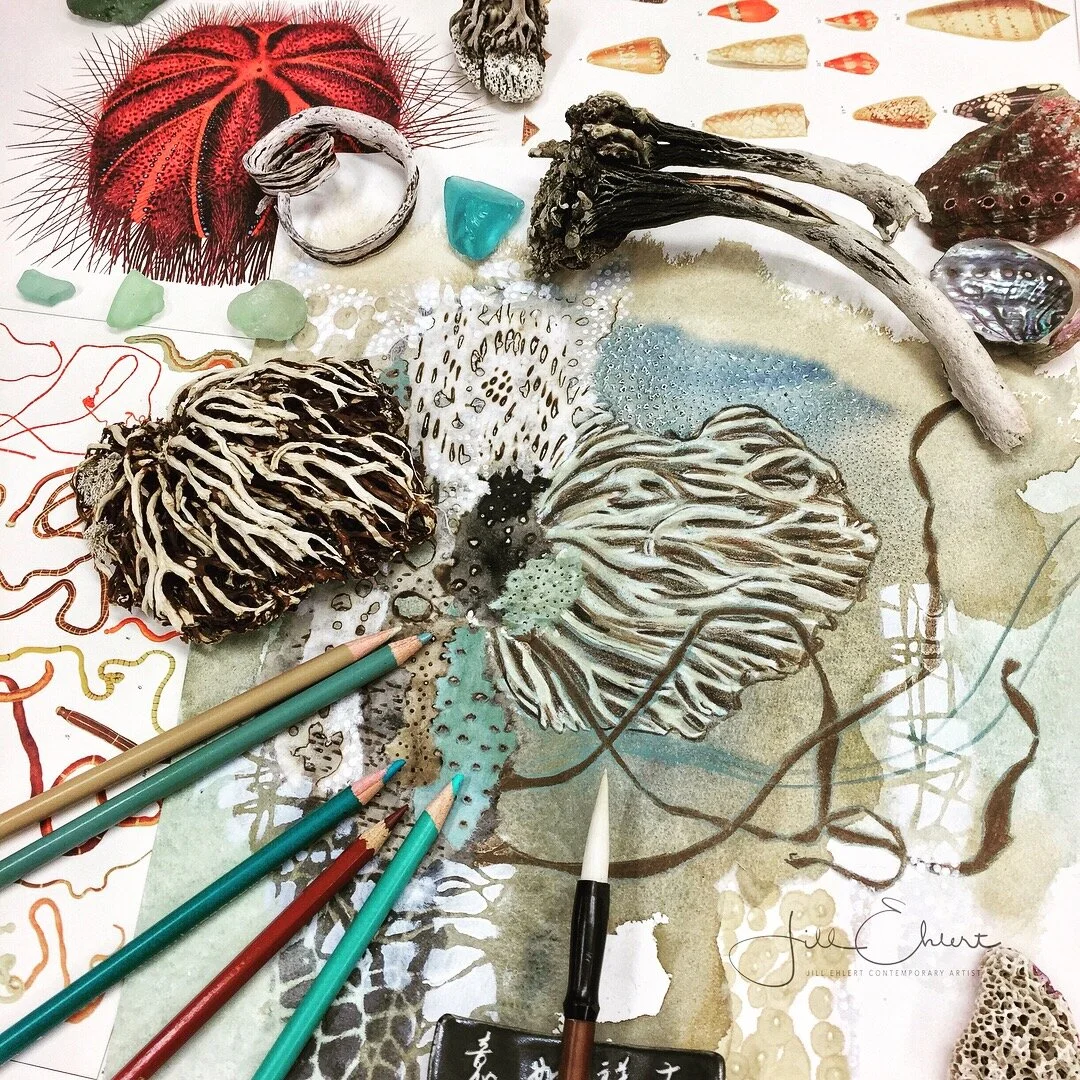 The images below are segments from the mixed media collage work in the “SeaForms” series.
