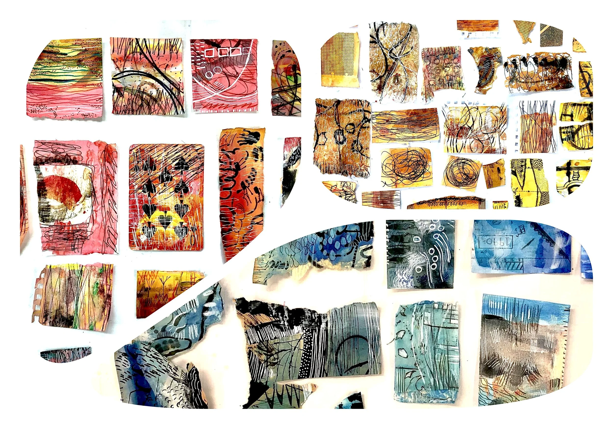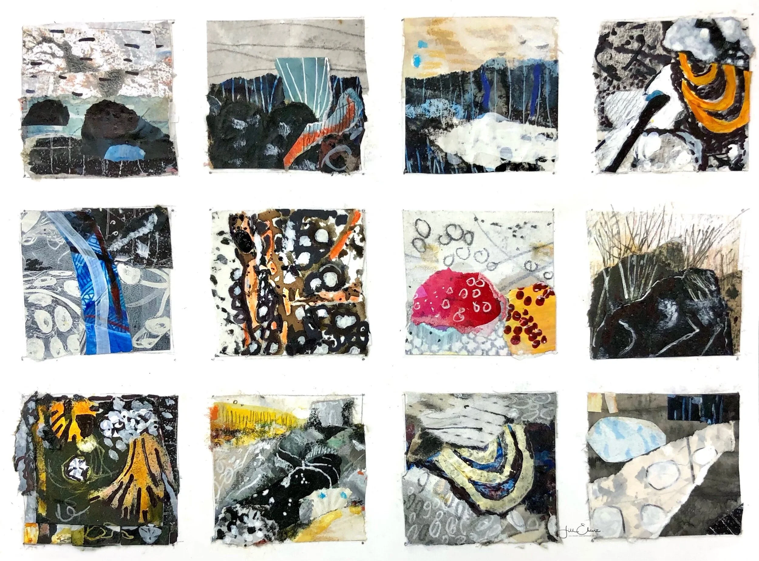 These tiny abstract thumbnail collages measure just, 1.5” X 1.5”